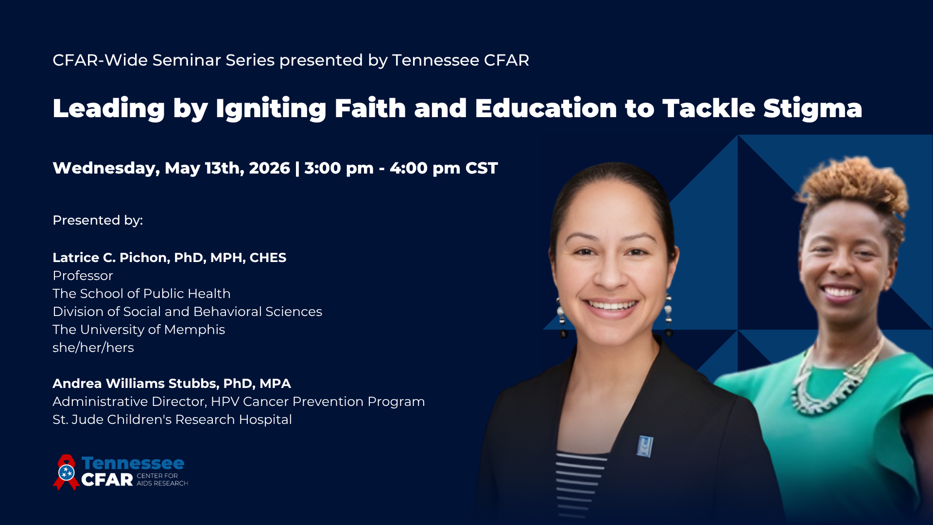 The mission of the Tennessee CFAR is to reduce the burden of HIV/AIDS in Tennessee and to implement these benefits nationally and globally.