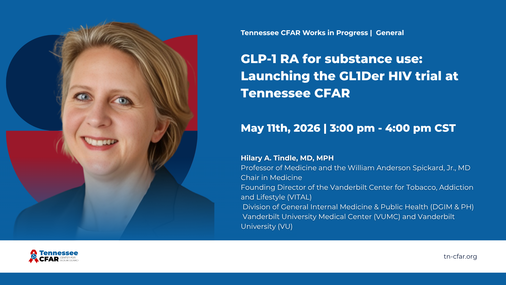 The Tennessee Center for AIDS Research aims to reduce the burden of HIV/AIDS in Tennessee and to implement these benefits nationally and globally.